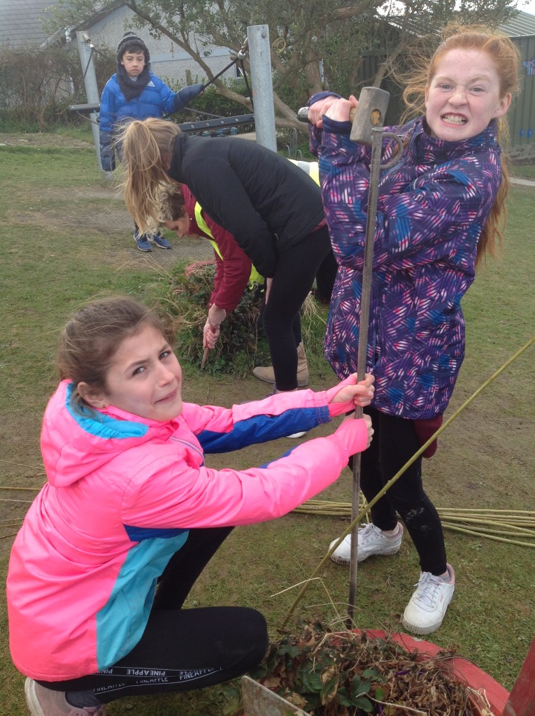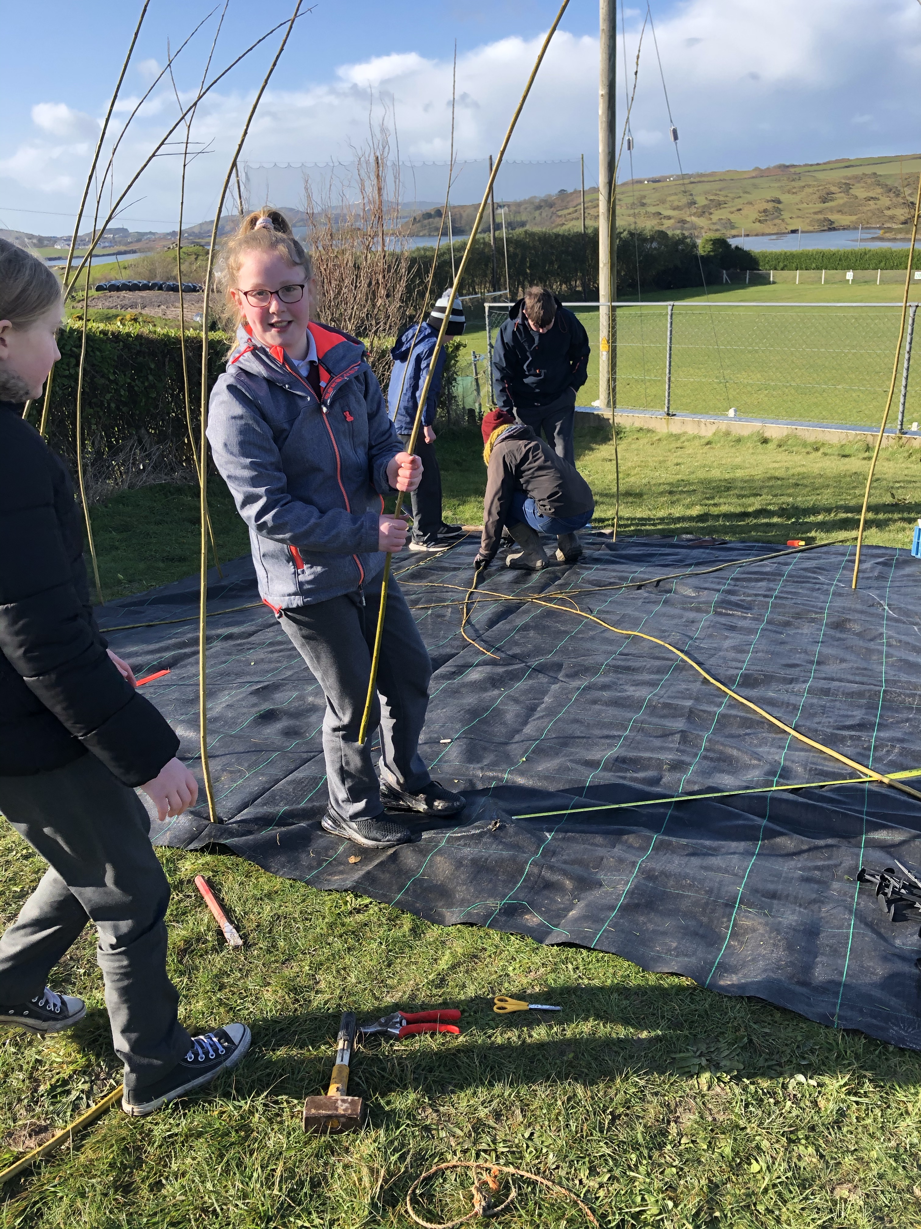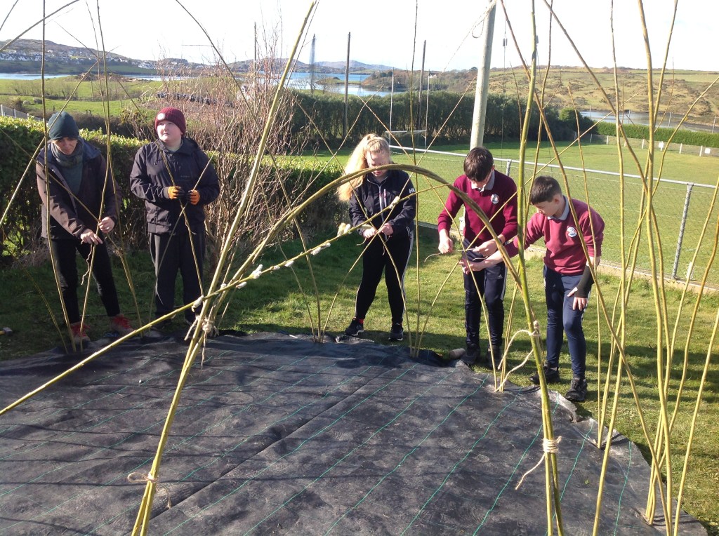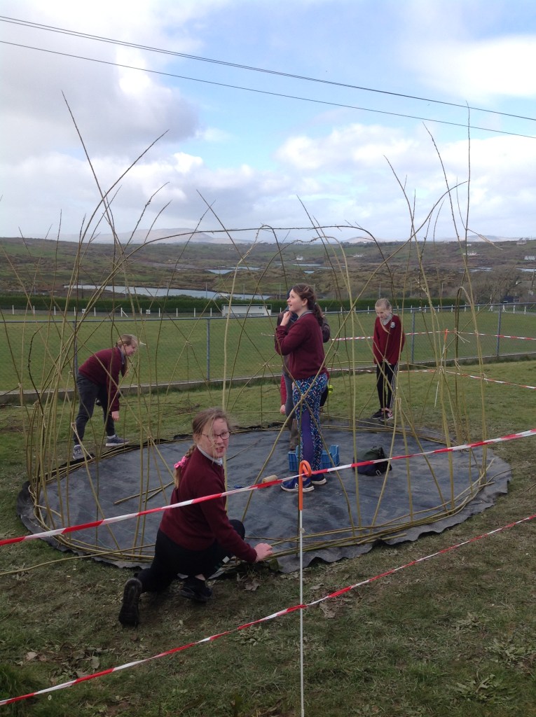 There was big excitement today as we started our willow structure in the garden. We’ve been planning one for years so it’s great to see it coming into fruition, under the expert tutelage of Muriel Pitton & Bébhinn Granaghan. Thanks ladies! 5th & 6th have been working with them in small groups, planning, measuring & planting. It’s a great link in with Engineering week too. Watch this space for the final product!