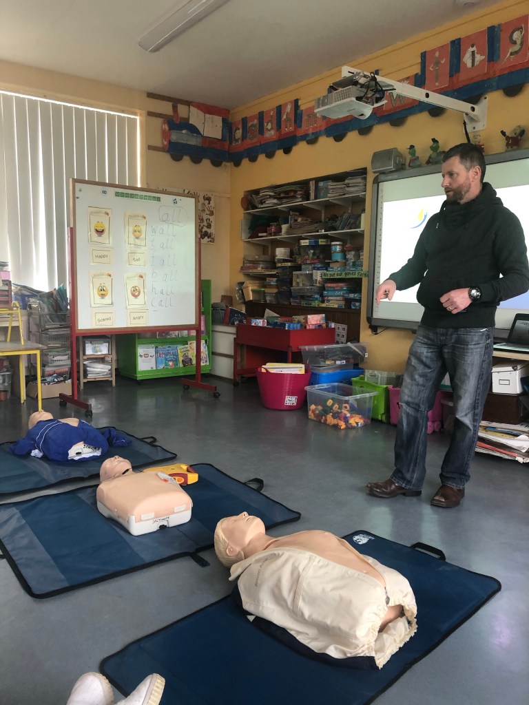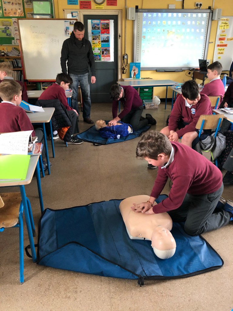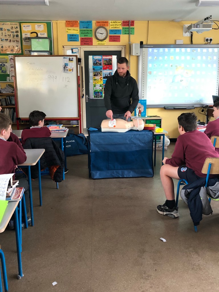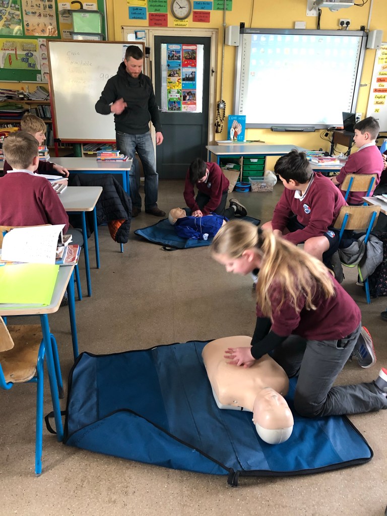 Thanks to chairperson of our Board of Management, David Sheehy, for volunteering his time & his expertise to train all staff in CPR & Defibrillator training. We completed our first half of the course on Tuesday and he kindly came in to speak to our senior students and demonstrate some life saving skills. They even got a chance to try some chest compressions. It was very informative and worthwhile. Thanks David!