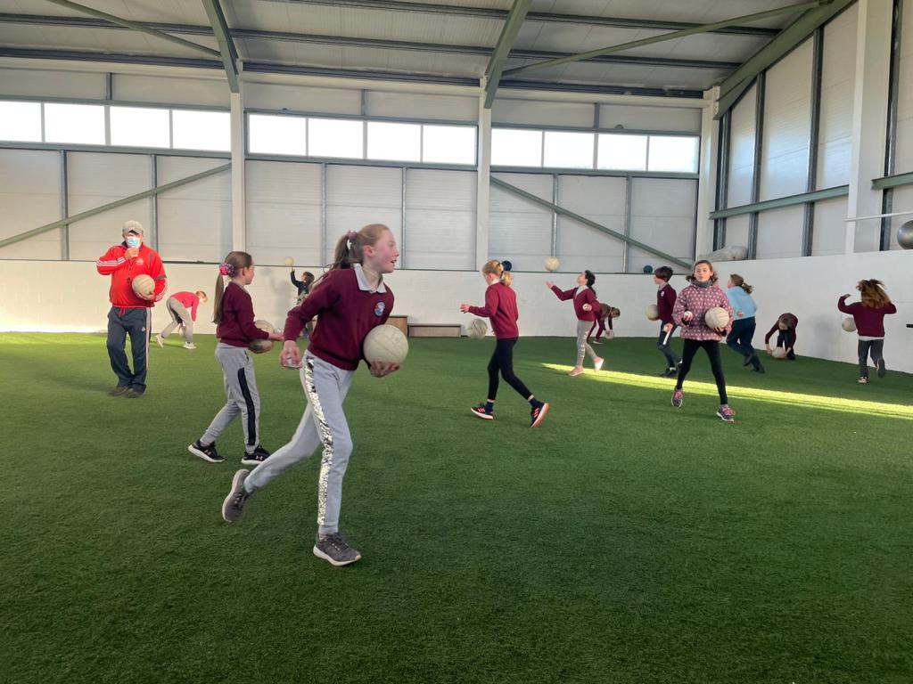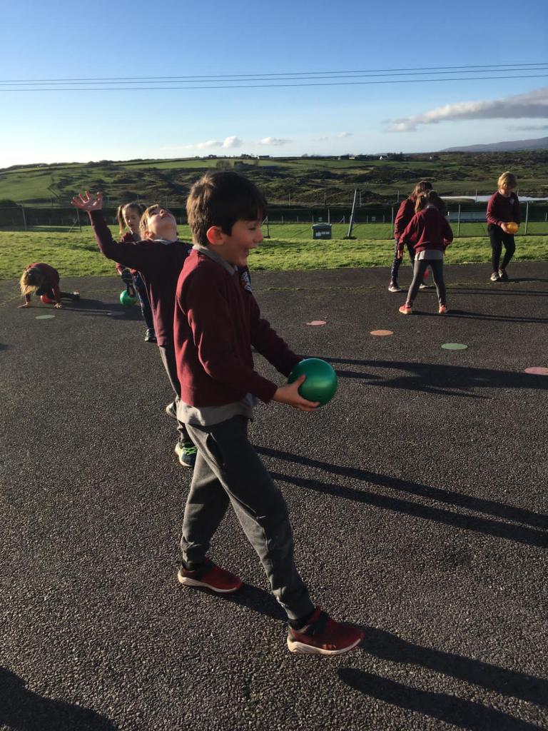 Ciara O’Driscoll from Skibbereen Basketball Club kindly organised great value basketballs with the help of Basketball Ireland for all the local schools who took part in the Junior NBA last year. Here she is with Cathal and Ellen when she visited.