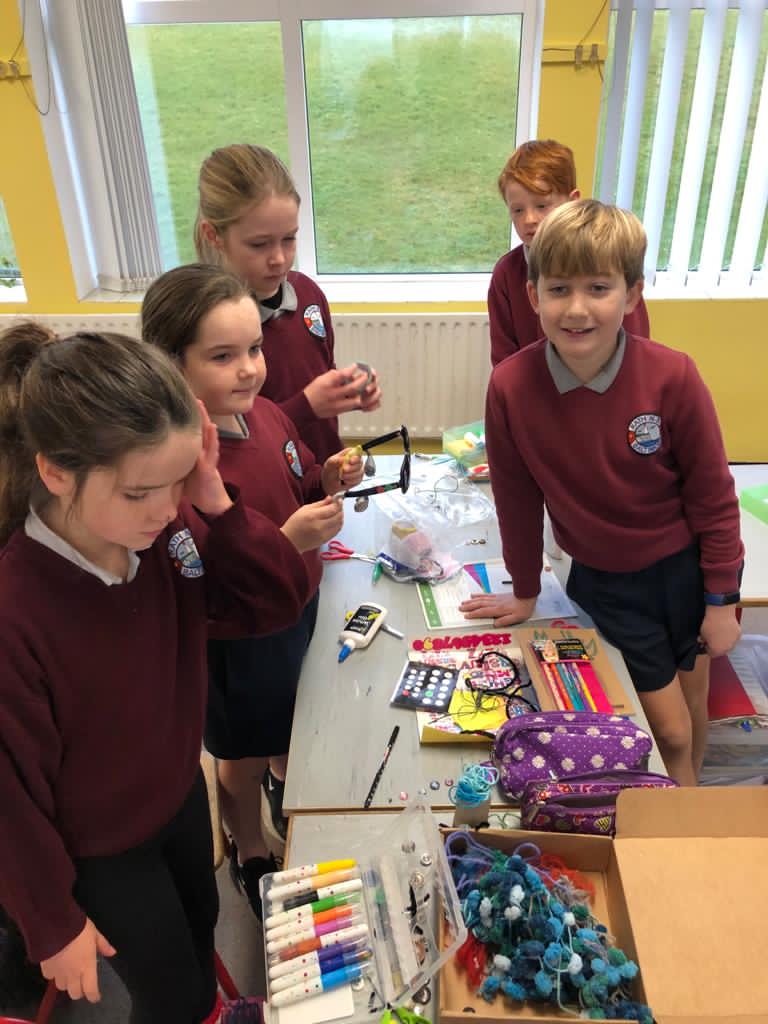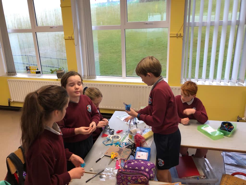 5th and 6th Class recording advertisements videos to boost the tourism trade in Baltimore as part of a Geography project.