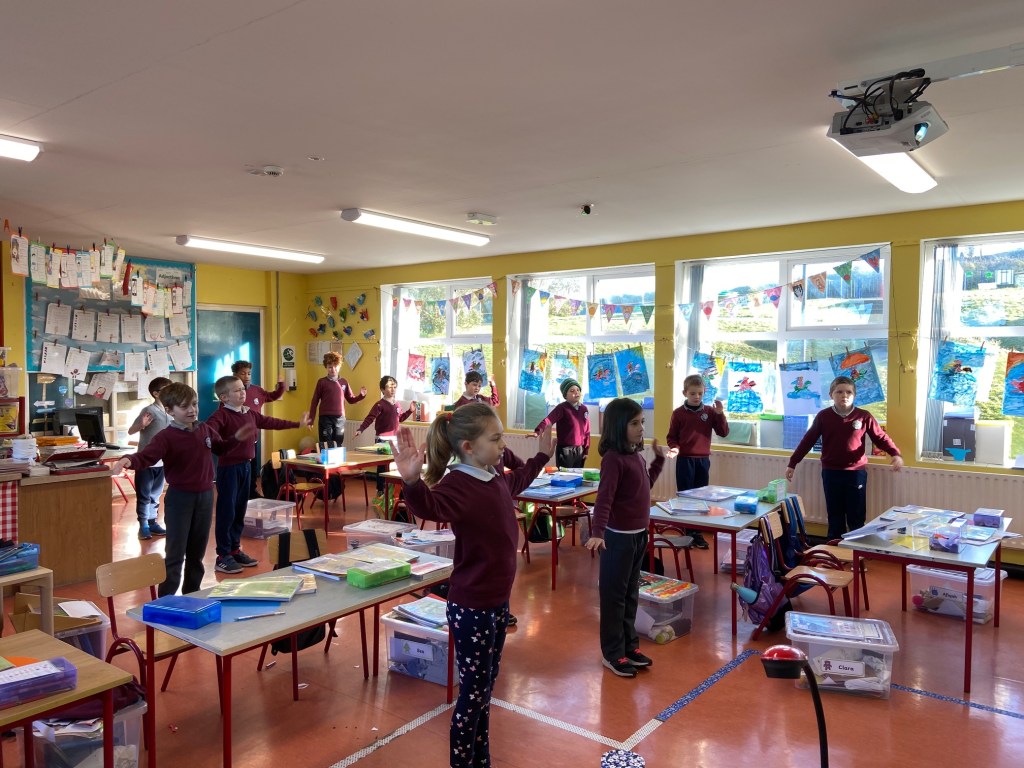 The whole school are taking part in the Active Flag 4 week Active break Challenge. Here are 2nd Class in action.