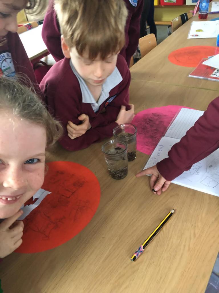 Patrick and Clodagh in 4th Class setting up their experiment for Science Week