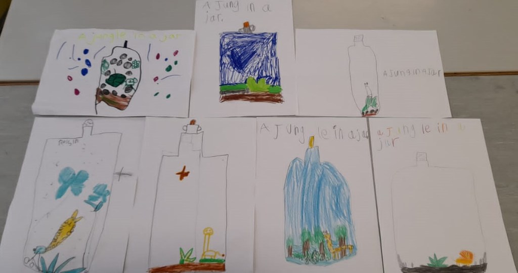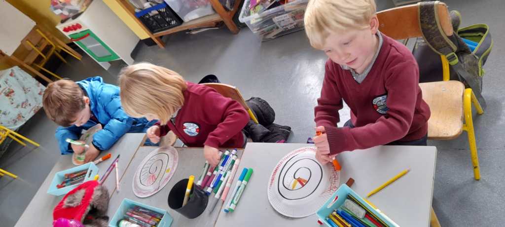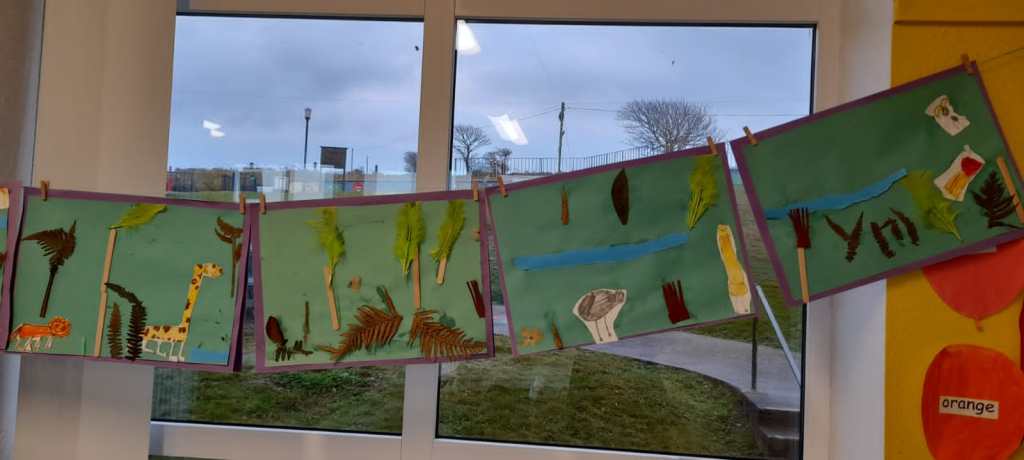 It’s been all about the jungle in Infants this month. Here they are playing a ‘walking in the jungle’ game in P.E. Lots of jungle theme Aistear and Art too.