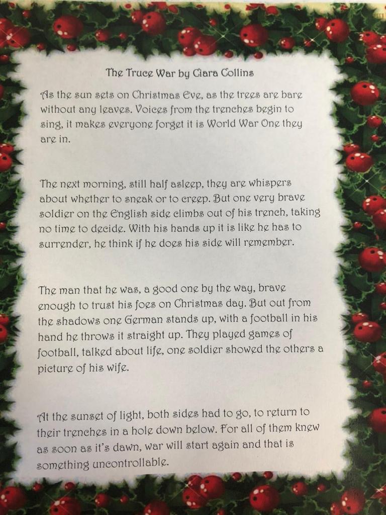 Amazing poem by Ciara Collins in Fourth Class based on a true story