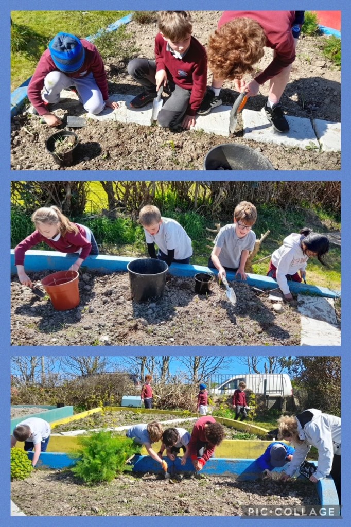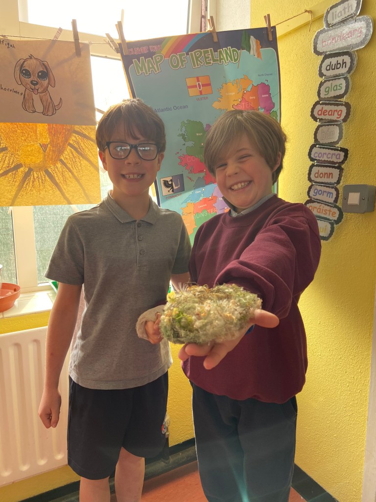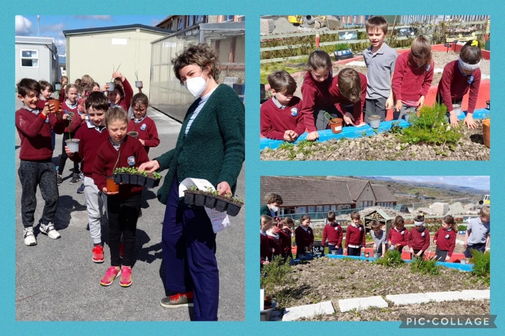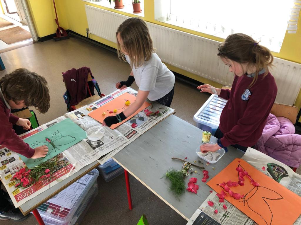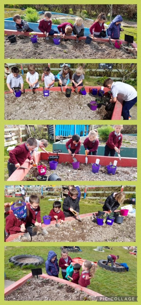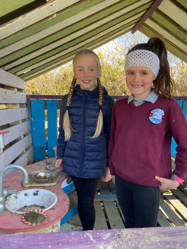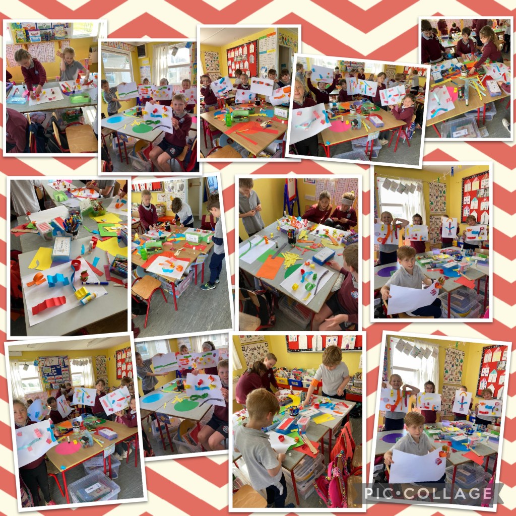 The infants have been exploring the Aistear theme of ‘Building’ – very appropriate given all the activity happening outside their classroom! They have four stations and move to a different one each day.