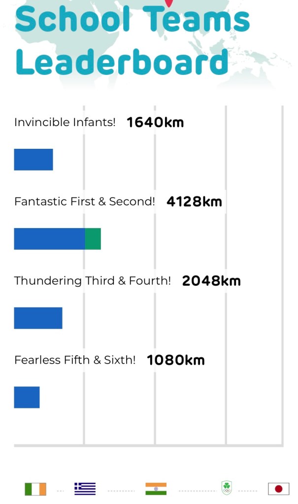 We are joining Team Ireland on the “Road to Tokyo” in a new virtual reality active challenge! The 4 week challenge encourages schools to get active and learn more about the upcoming Olympics. We have four school teams – Invincible Infants, Fantastic First & Second, Thundering Third & Fourth and Fearless Fifth & Sixth. Each team will log their daily physical activity which will be converted to a distance which will help their team get to Tokyo.