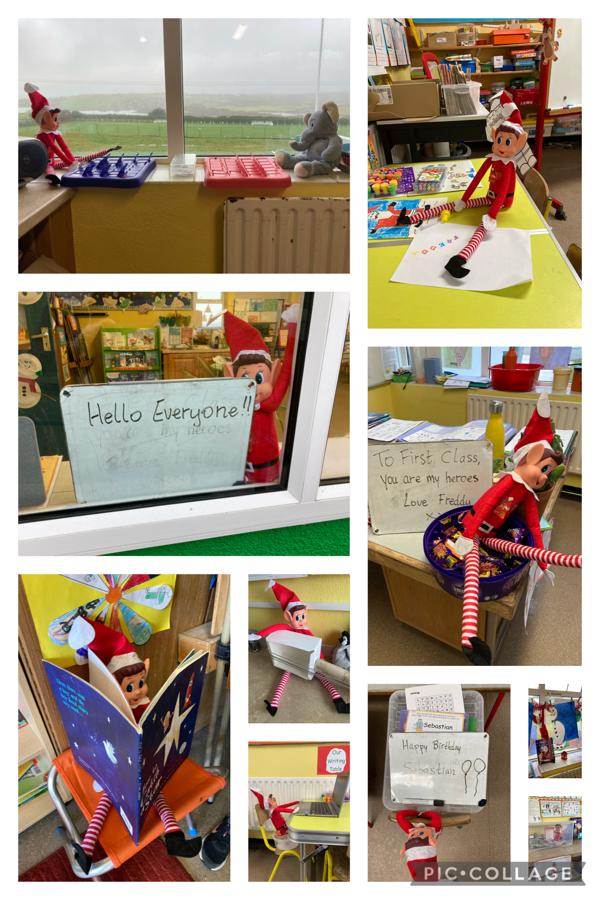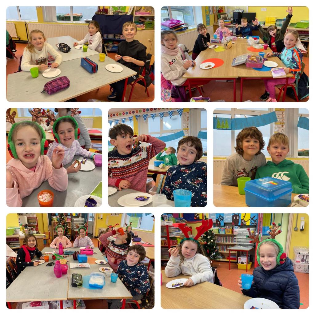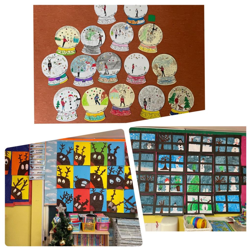 Christmas artScience Week projects5th & 6th doing a wellbeing webinarWhole school reindeer walk!Prize winners of the Skibb Chamber of commerce Christmas art compLetters and gifts for distribution to the elderly in our area by the Lions ClubChristmas elf exercise funPart of the One million trees projectDecember surprise visitor!