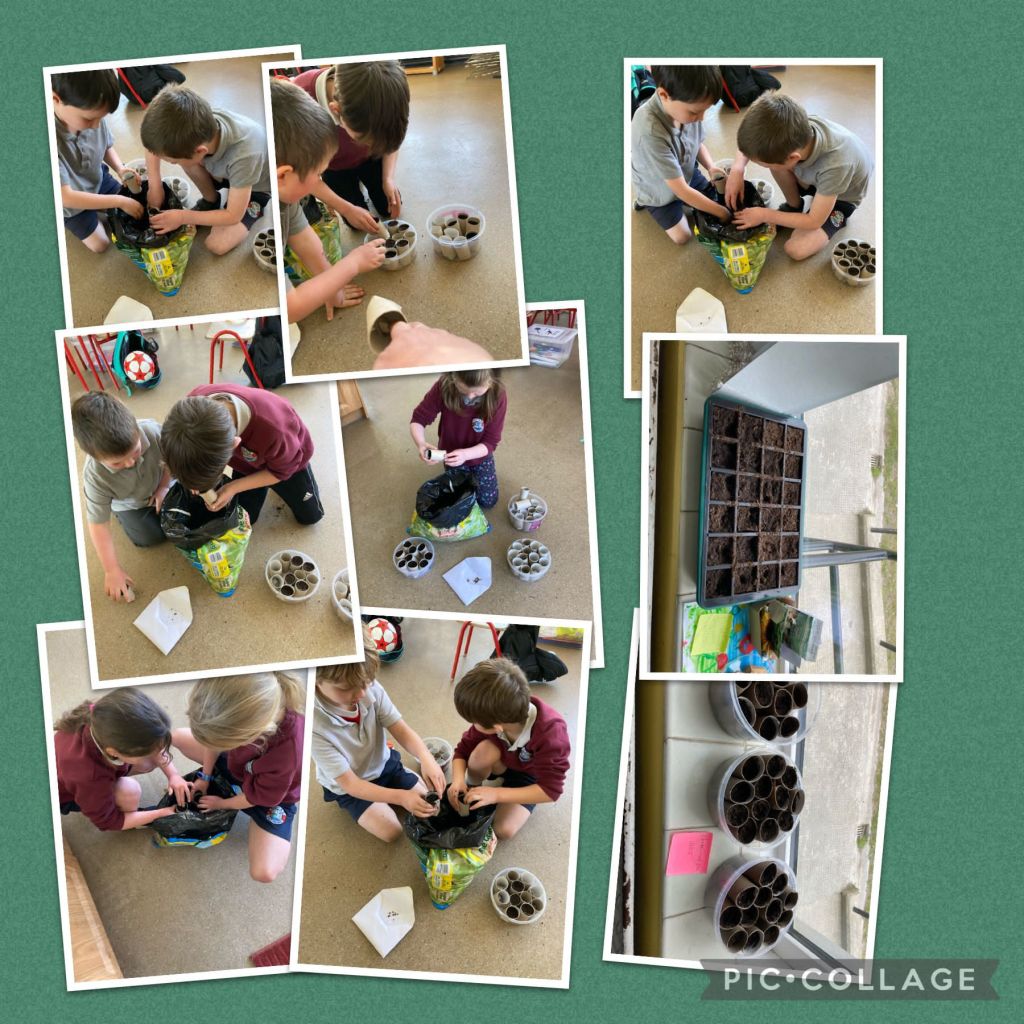 Planting sweet peas and spring onions in First Class