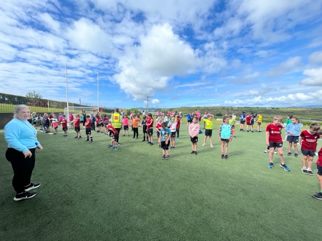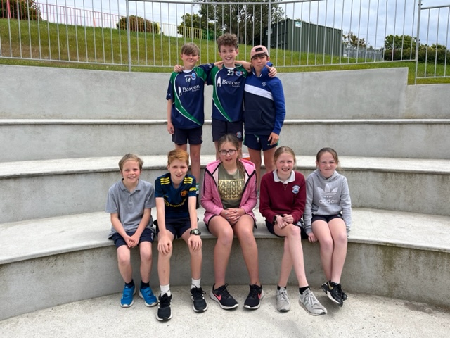 Sports Quiz winners – Theo, Fiachra, Ellen, Lucy and Annie. Andrew, Aodh and Alex represented Ilen Rovers at a kicking competition.
