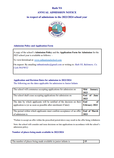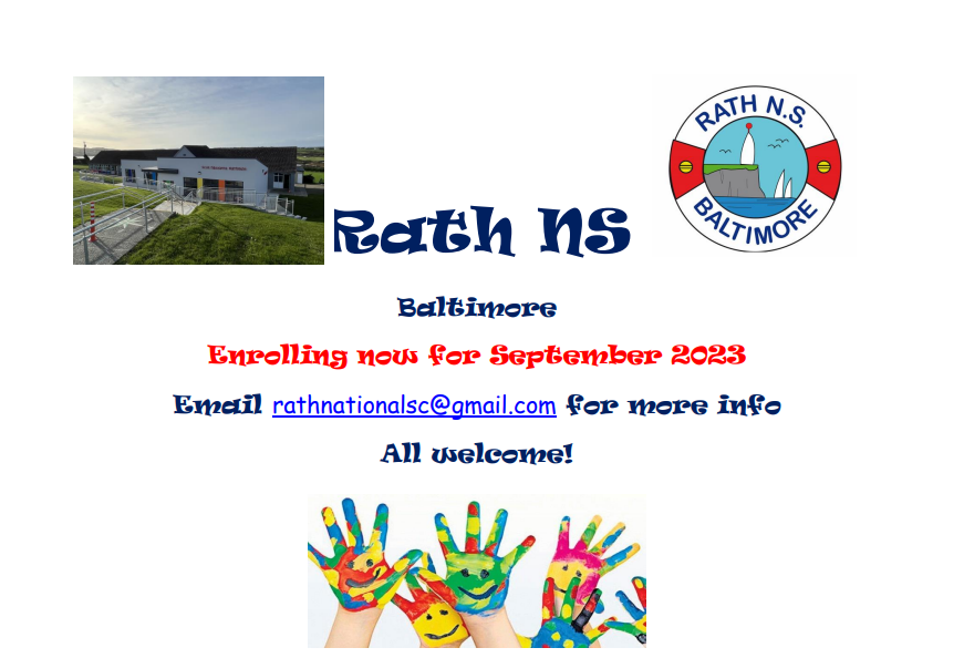 Rath NS is now enrolling. We welcome all perspective pupils to visit on Friday, Feb 3rd from 2-4pm. More information can be found on our website or email us at rathnationalsc@gmail.com