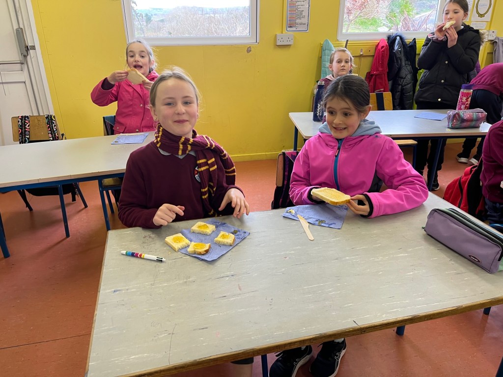 Yoga, experimenting with dry ice, Céilí Dancing, group projects on France, making marmalade sandwiches, Rugby Training with Damien Hicks from Munster Rugby & World Book Day – 3rd & 4th Class have been busy this month! 😊
