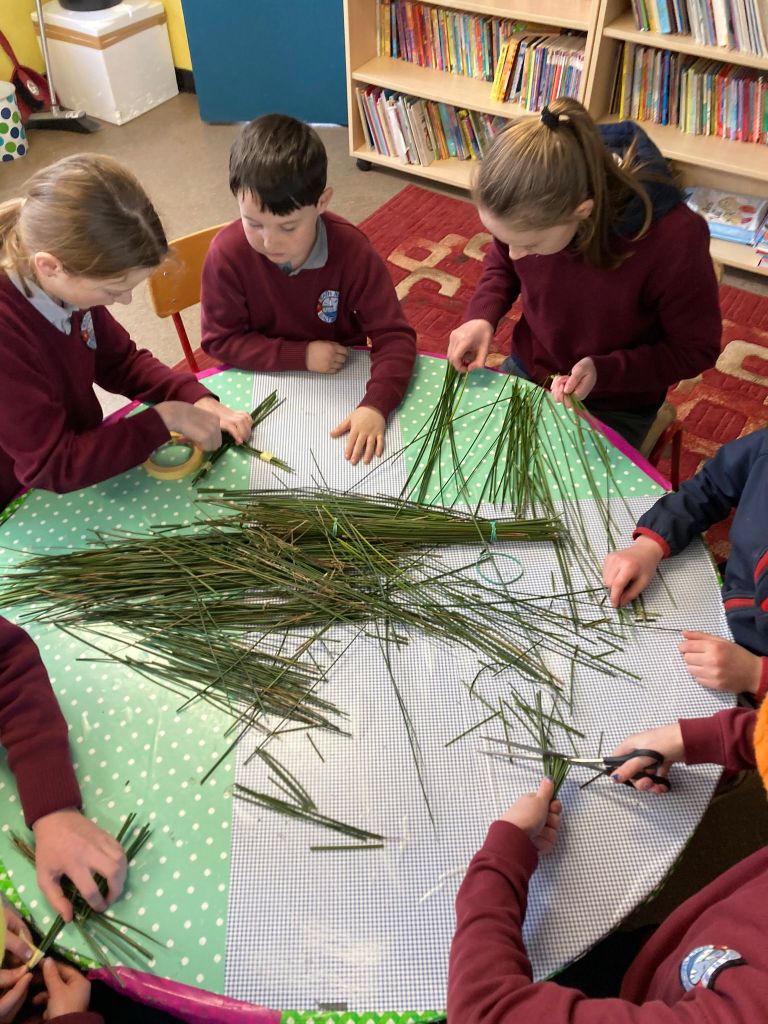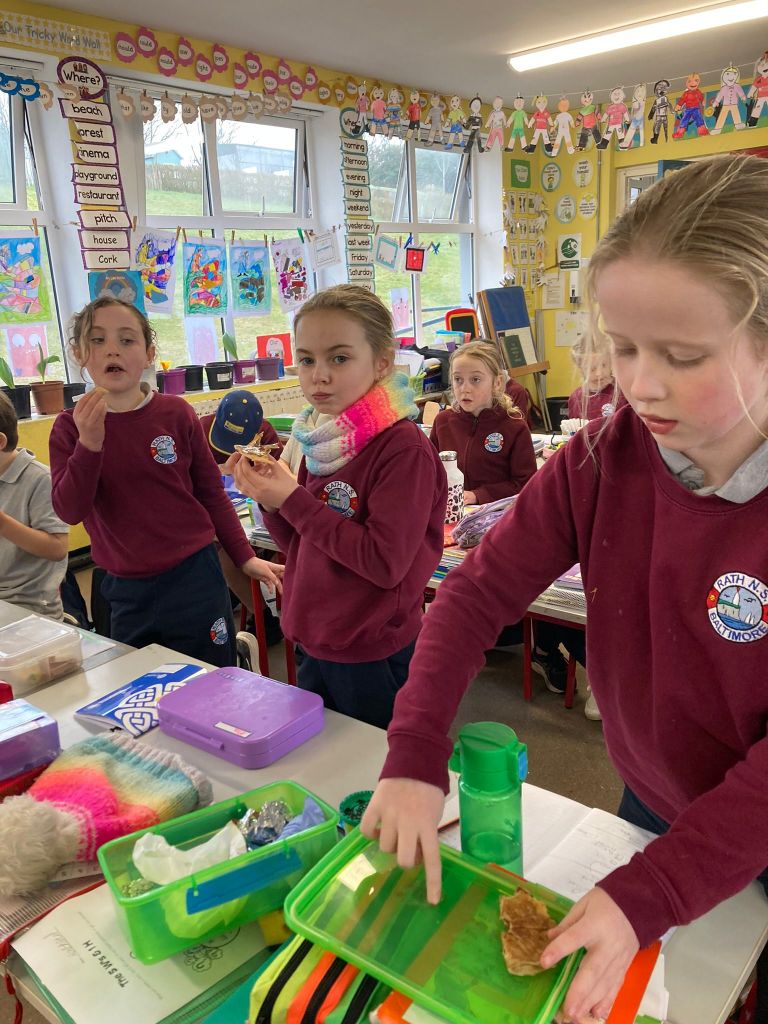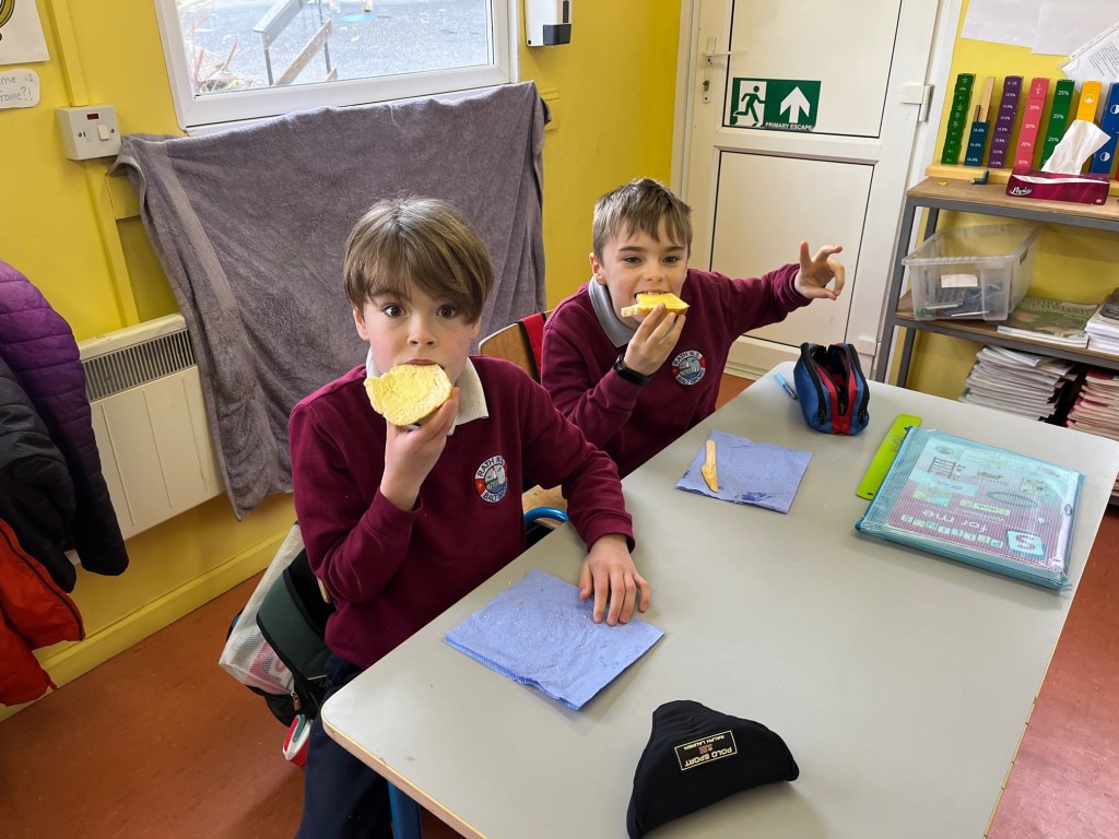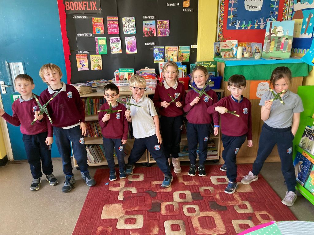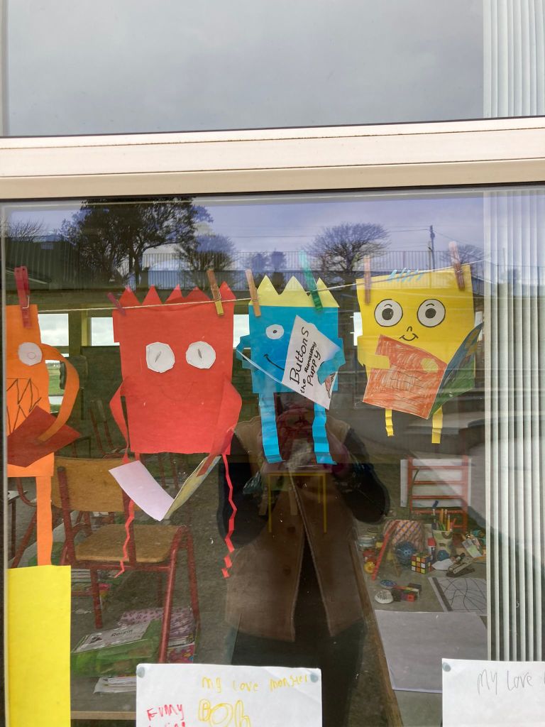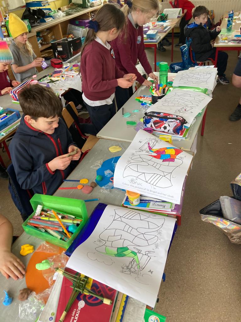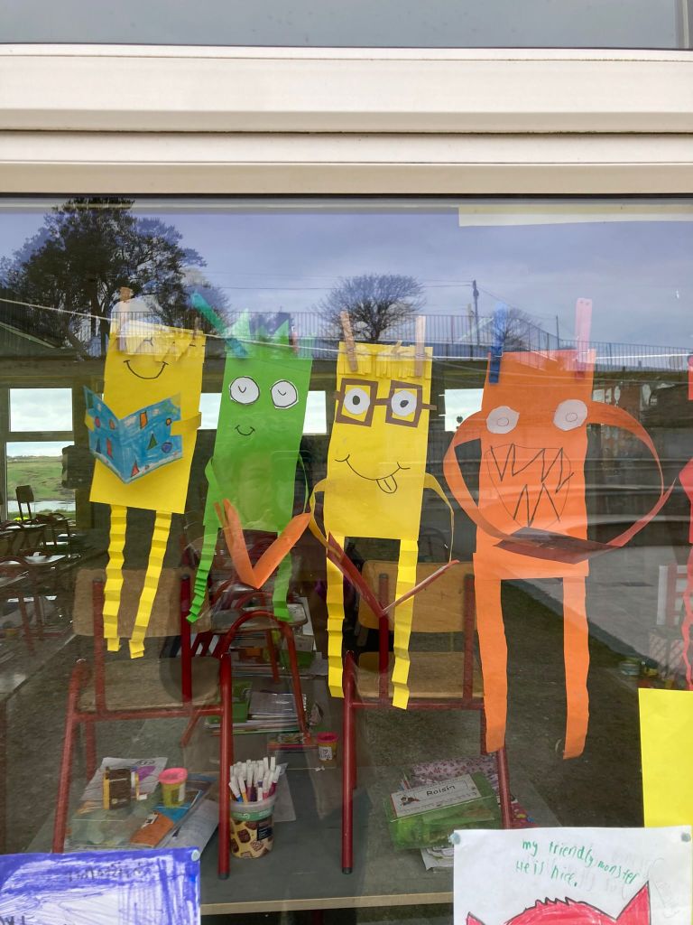 Spring is also in the air in First and second class as they enjoyed a lovely nature walk and all things St Brigid – it was great having the older classes help them make the traditional crosses. They have been getting very creative with clay making delicious donuts and bowls and loved learning all about fractions and length. Méabh and Ola treated the class to some wonderful tunes and World Book Day is celebrated in style with monster bookmarks and reading in the sun ☀