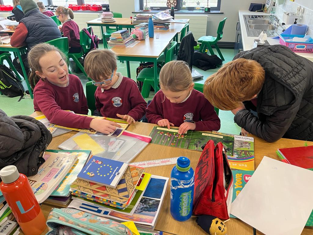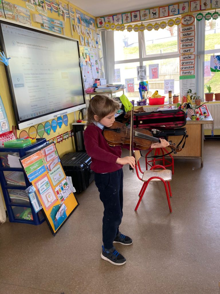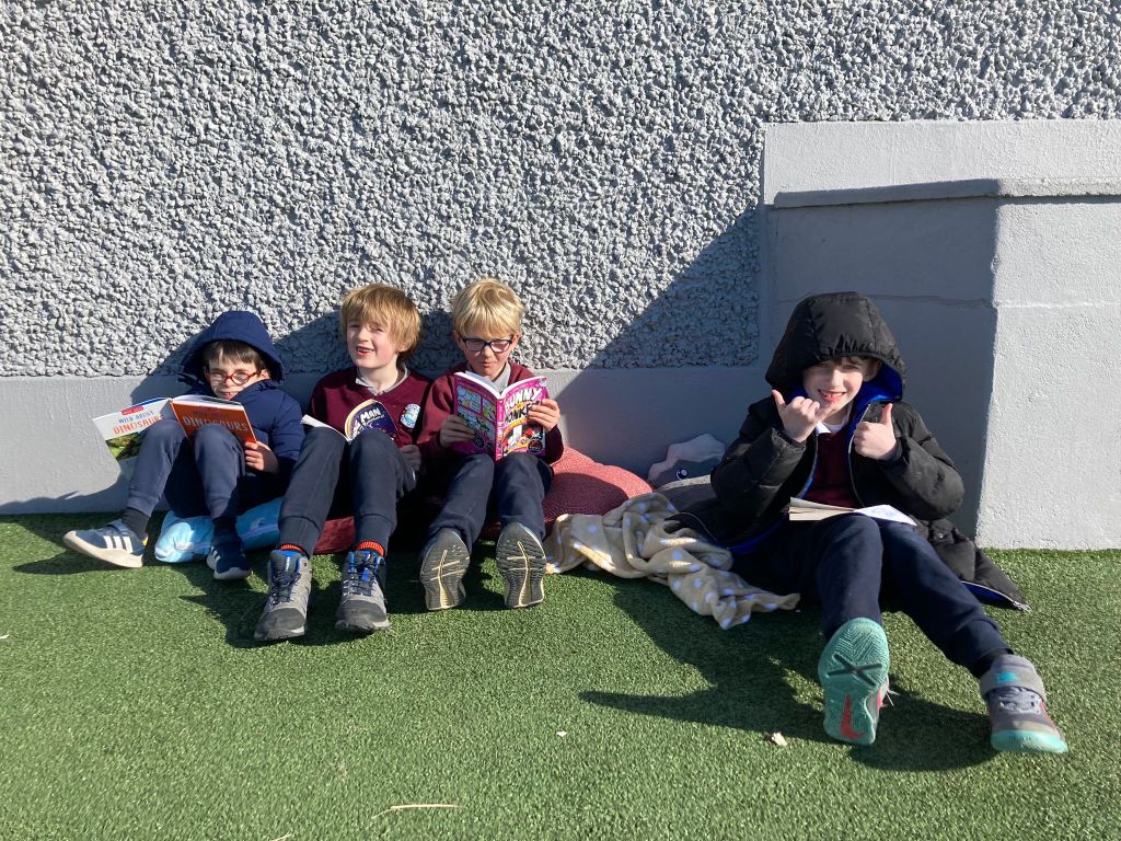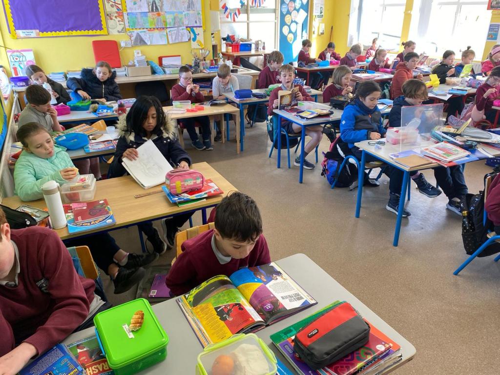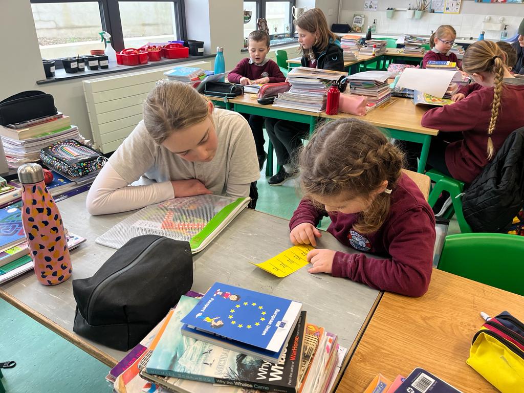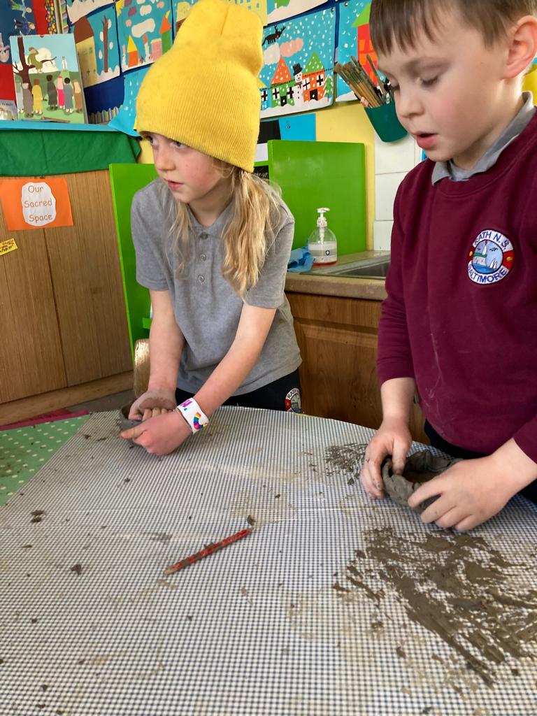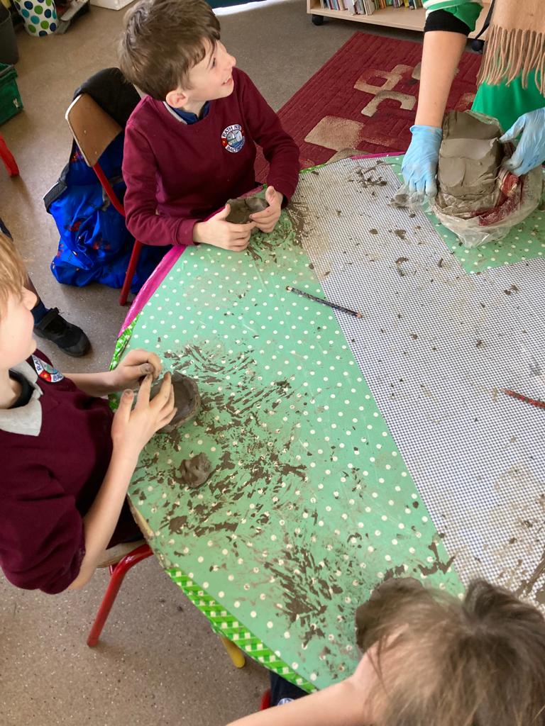 Spring is also in the air in First and second class as they enjoyed a lovely nature walk and all things St Brigid – it was great having the older classes help them make the traditional crosses. They have been getting very creative with clay making delicious donuts and bowls and loved learning all about fractions and length. Méabh and Ola treated the class to some wonderful tunes and World Book Day is celebrated in style with monster bookmarks and reading in the sun ☀