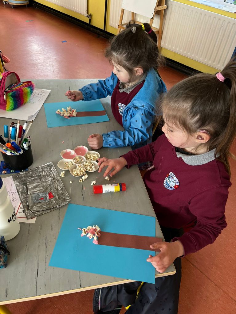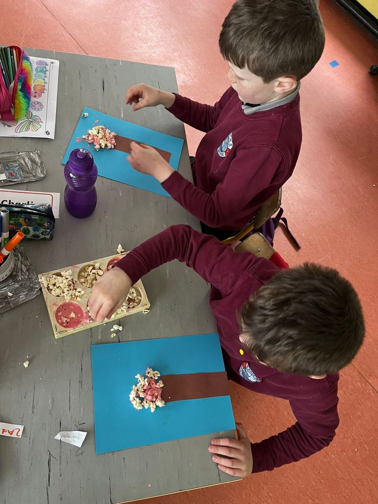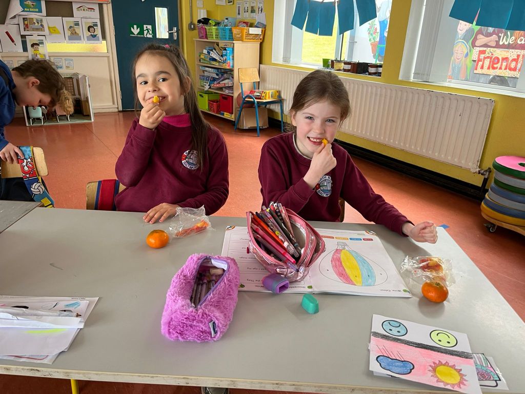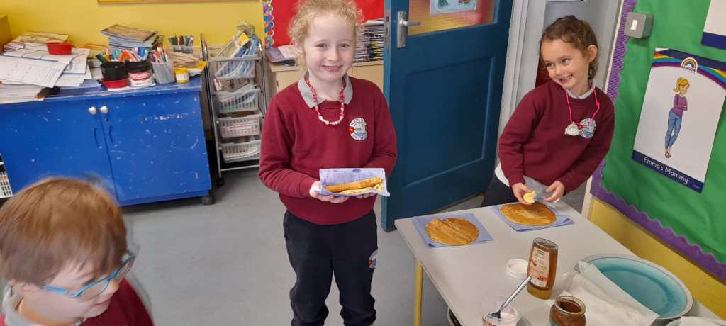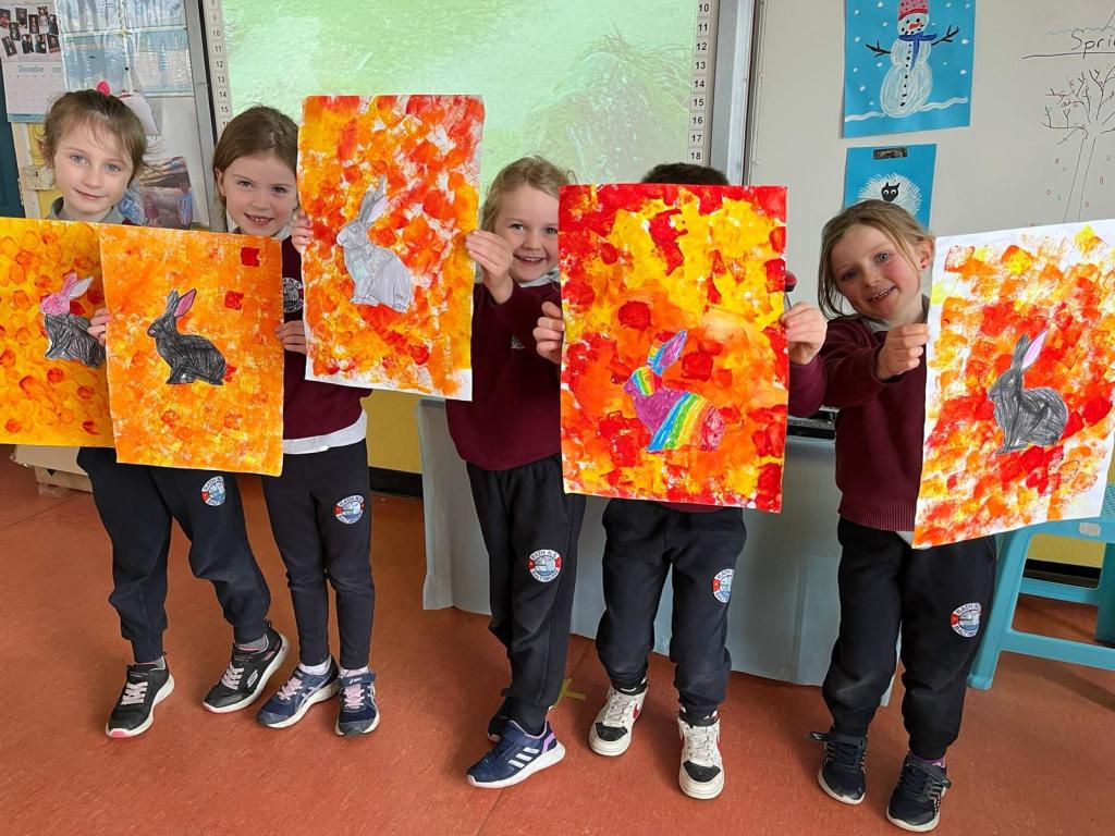 Infants have had a fantastically full February! Spring has sprung with their signs of Spring hunt, spring planting, St Brigid’s crosses, cherry blossom popcorn art and lamb pictures. They enjoyed some yummy pancakes and food dudes healthy snacks. Lots of great art activities have taken place when learning about Chinese New Year, Valentine’s Day and Ash Wednesday. They have been at the Vet in Aistear and designing their own apps and tablets for safer internet day. They always love to be active and have been developing some hockey skills, learning some new skills in kickboxing and enjoying Irish Dancing lessons with Katie.