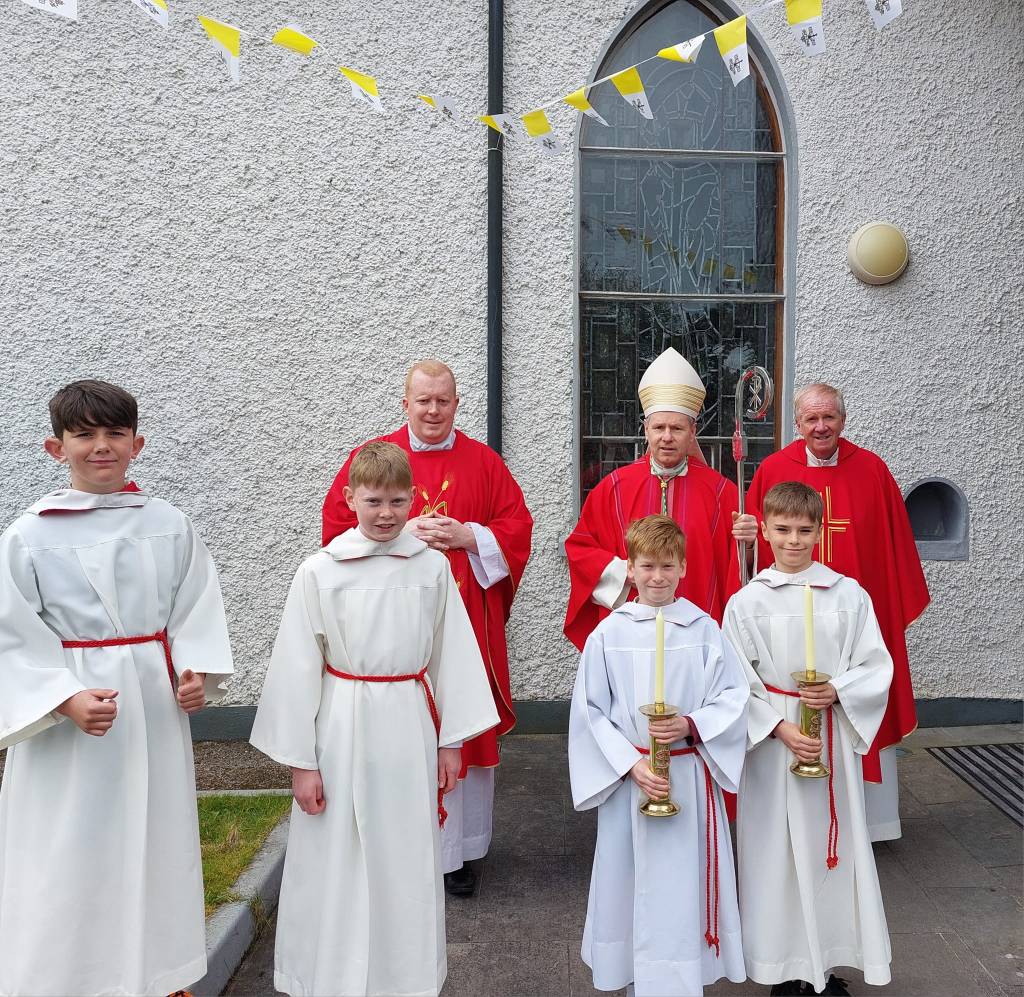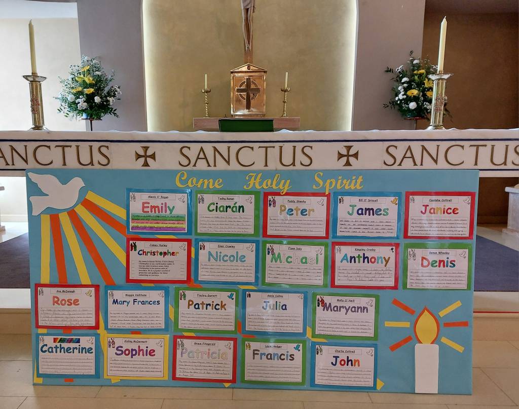 20 of our 5th and 6th Class children celebrated their Confirmation on Wednesday 24th April in Sacred Heart Church. Thank you to Bishop Fintan for his lovely ceremony and for making it such a special occasion for all the confirmation candidates and thanks also to Fr John and Fr Evin. Our amazing Principal, Maura Collins, had three roles on the day – Principal, Class Teacher and Parent of a confirmation candidate. Thanks to Maura for all the hard work and preparation she put in. Thanks also to all the children who made the day with their wonderful singing in the choir ably let by our super musicians, Ben and Jesse.