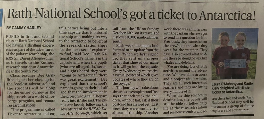 First and Second Class have had fun following the progress of the RRS Sir David Attenborough on its research mission from Harwich to Rothera in Antarctica. The school are lucky enough to have it’s name in a time capsule which will be left at the safely at the research station in Rothera. On it’s voyage, we received weekly updates by email which the children eagerly awaited. They were such a wide range of things they learning about from the workings of the ship, to life aboard it to the wildlife they came across and how the research station is run. A great experience all round!