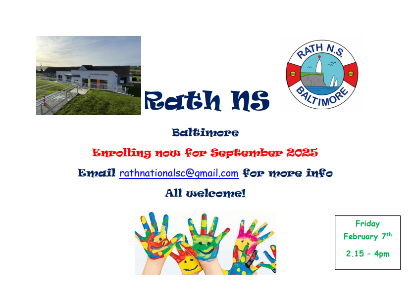We are now enrolling for the school year 2025/26. We would like to invite you and your child to visit our school on Friday, February 7th between 2.15 – 4pm. You can either enrol on the day or take a form away with you for completion at home.
