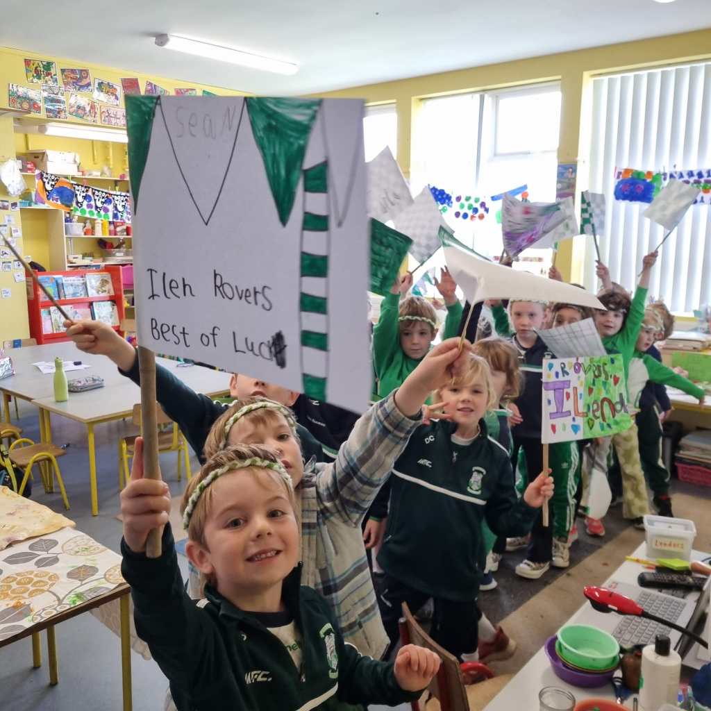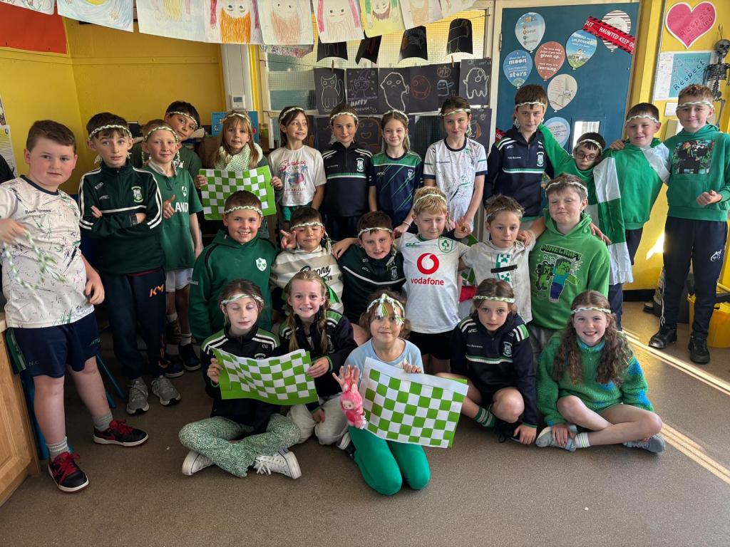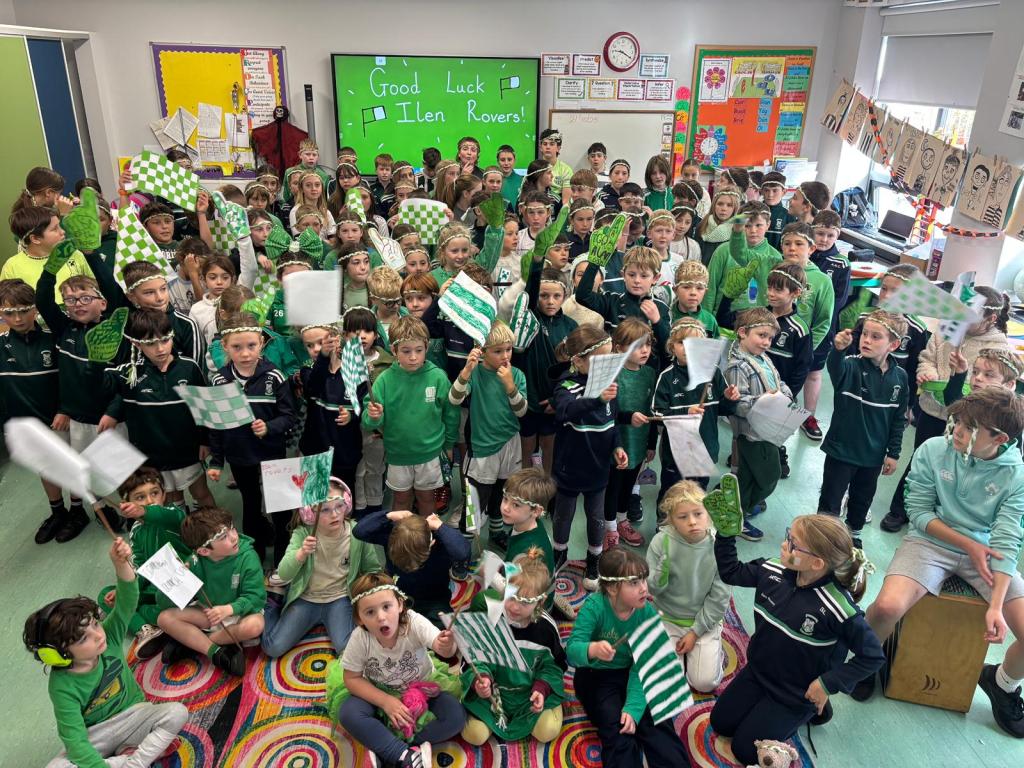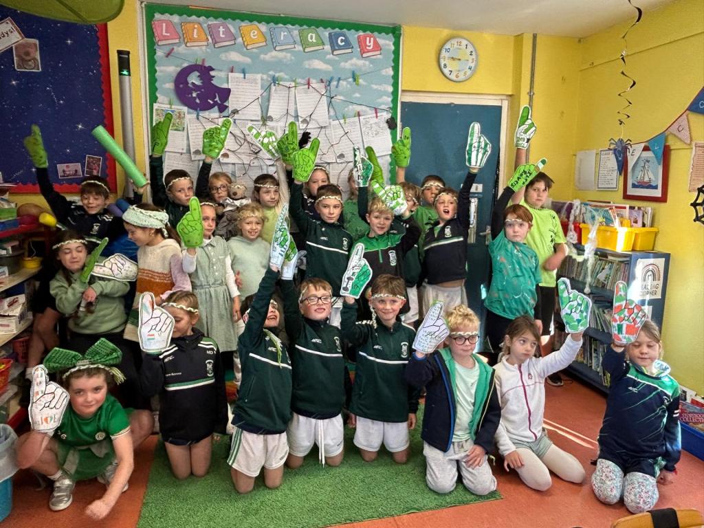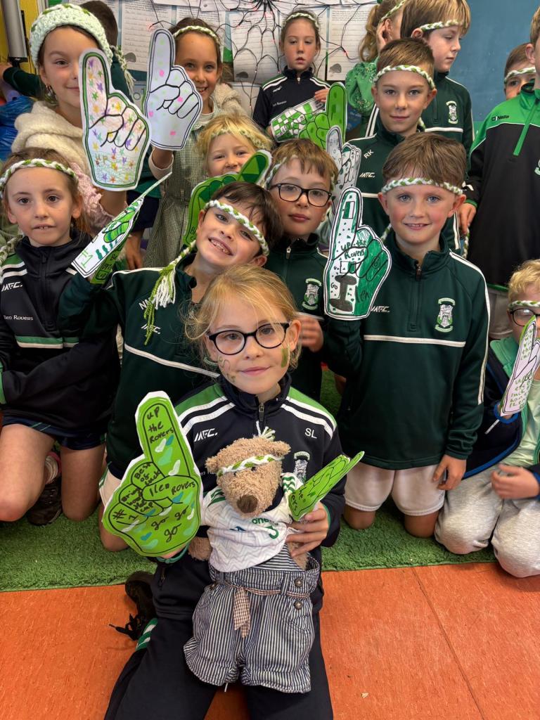 Excitement has been building in Rath and we had a great day sending our support & energy to our adult teams in Ilen Rovers for their county finals. There was some fabulous art work and outfits on display and an amazing 6th class girls plaiting team along with Maria & Niall, our TY students, meant there was green and white braids for all! We wish both teams all the very best and for our u8 & u10 boys who will be playing in Páirc Uí Chaoimh at half time on Nov 2nd!