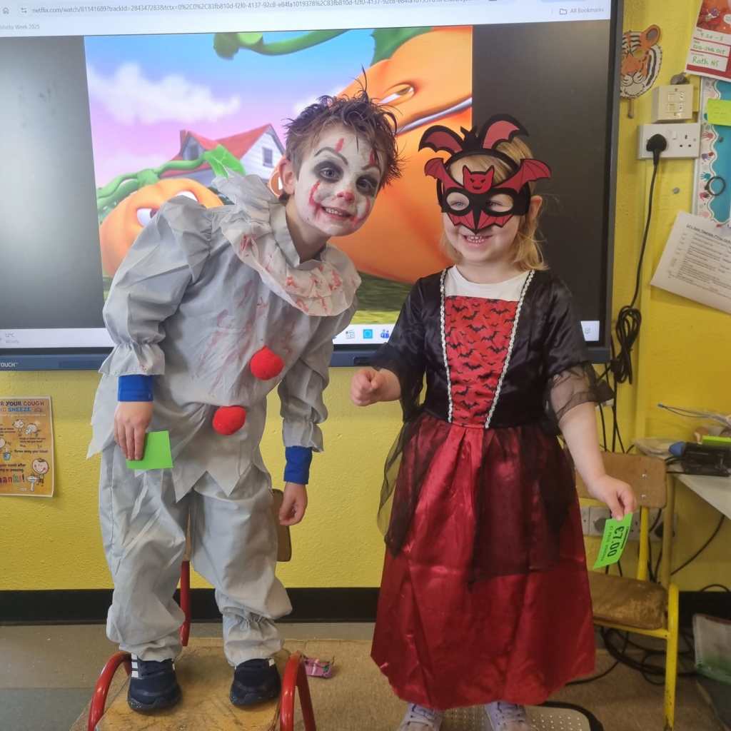 It was a fun filled spooky week before mid term on the run up to Óiche Shamhna. Plenty of arts, crafts, treats and games finishing with a fantastic dress up day. Well done to everyone on the great costumes!
